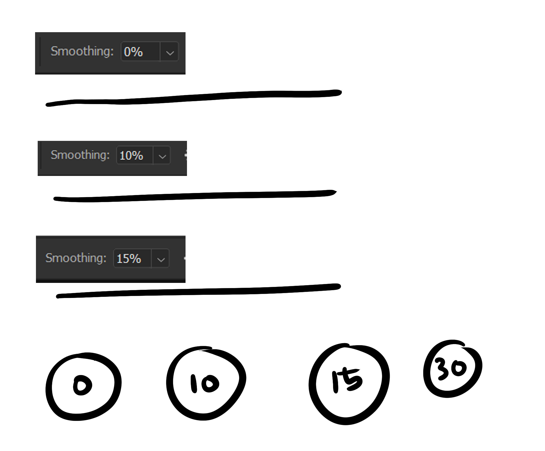 포토샵 자체에서 선 보정이 가능해진 만큼, 선화나 기타 브러시 사용에 유용하게 사용되는 기능입니다!