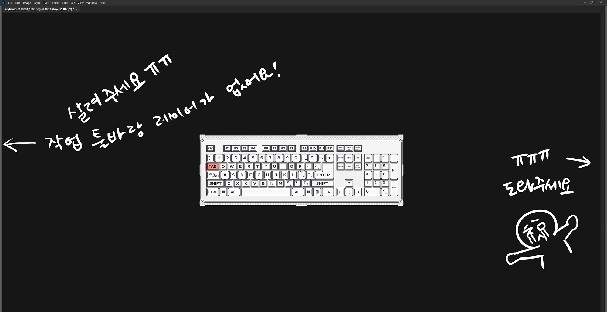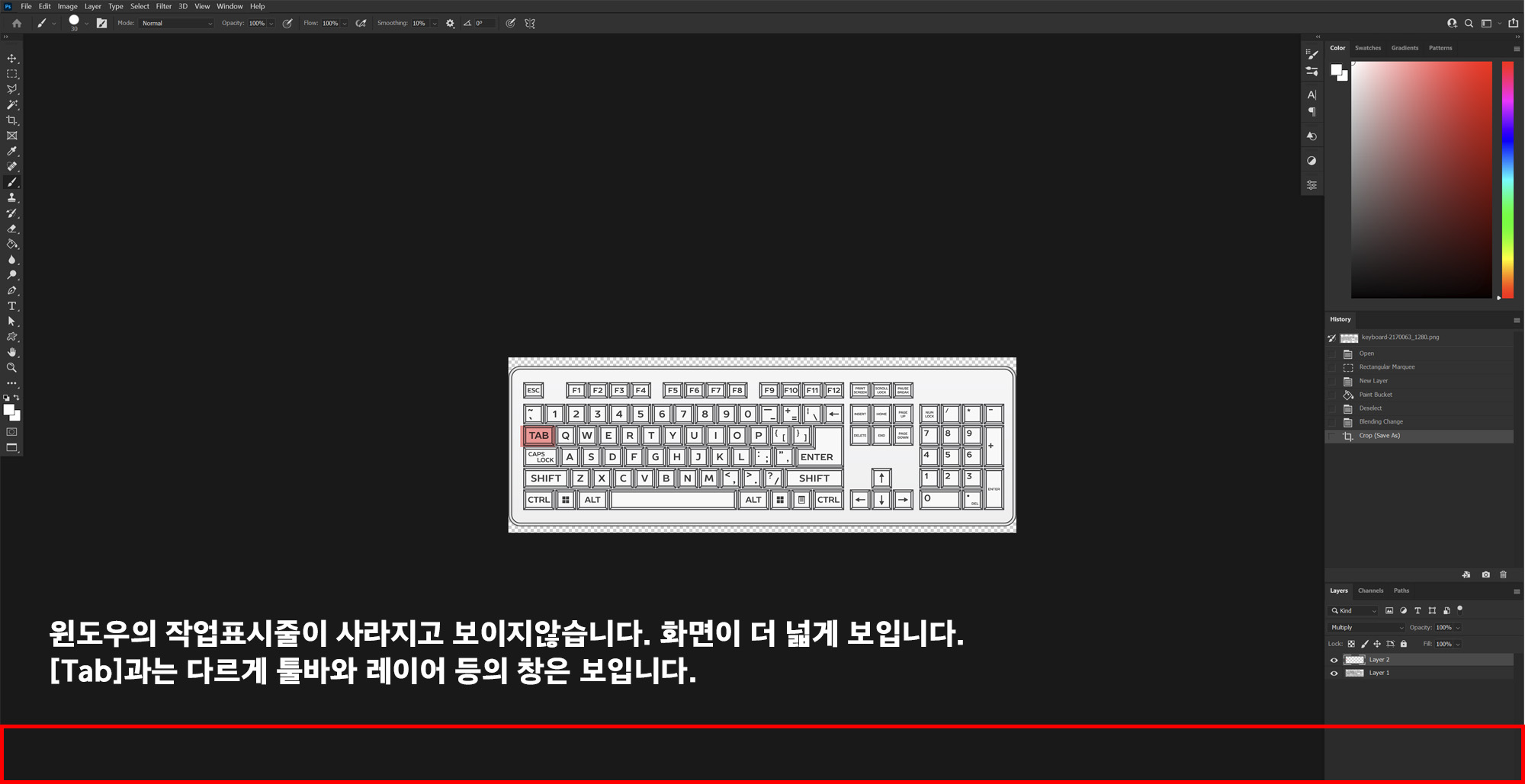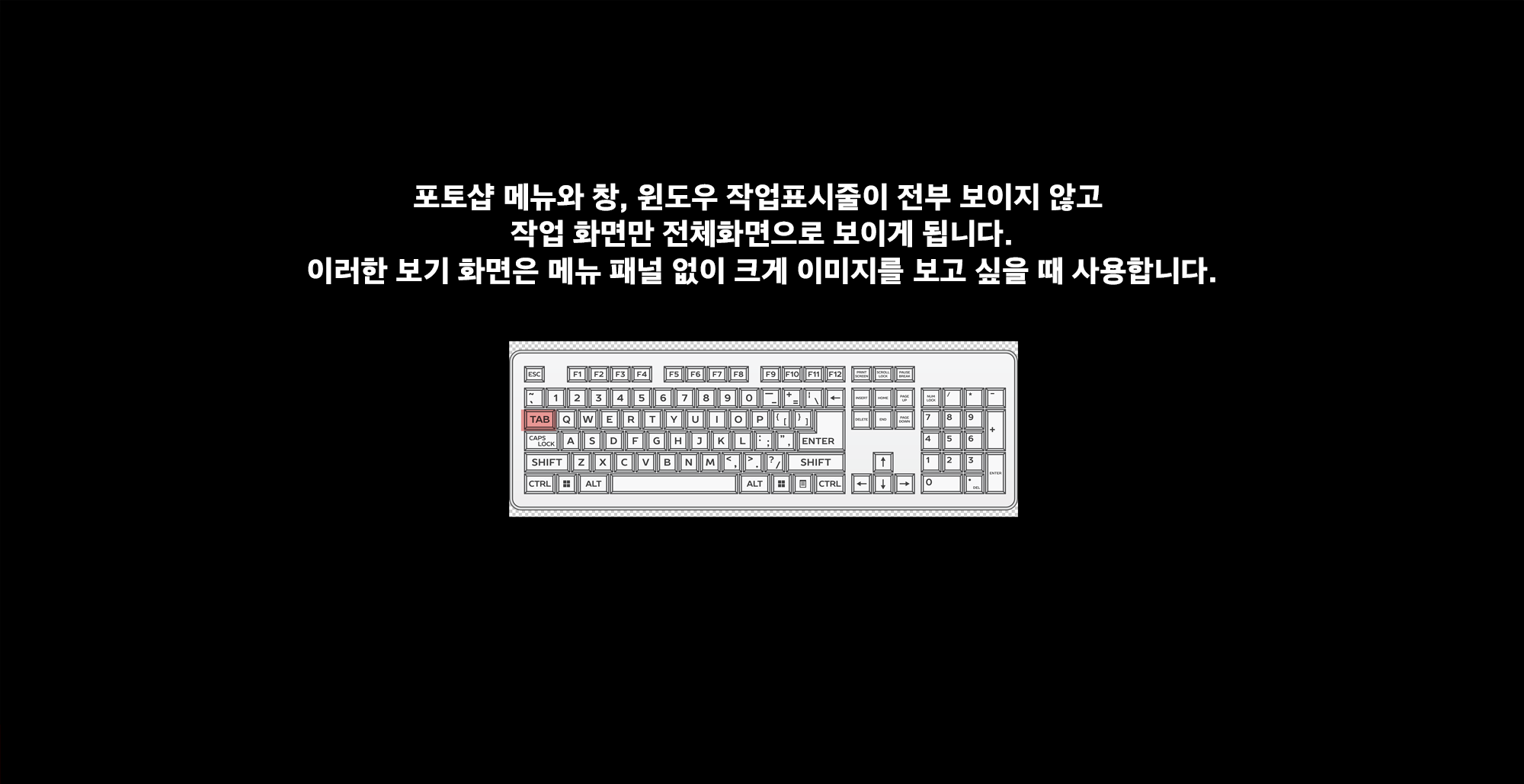 포토샵 키보드 단축키 [Tab]과 [F]입니다.