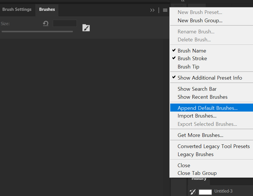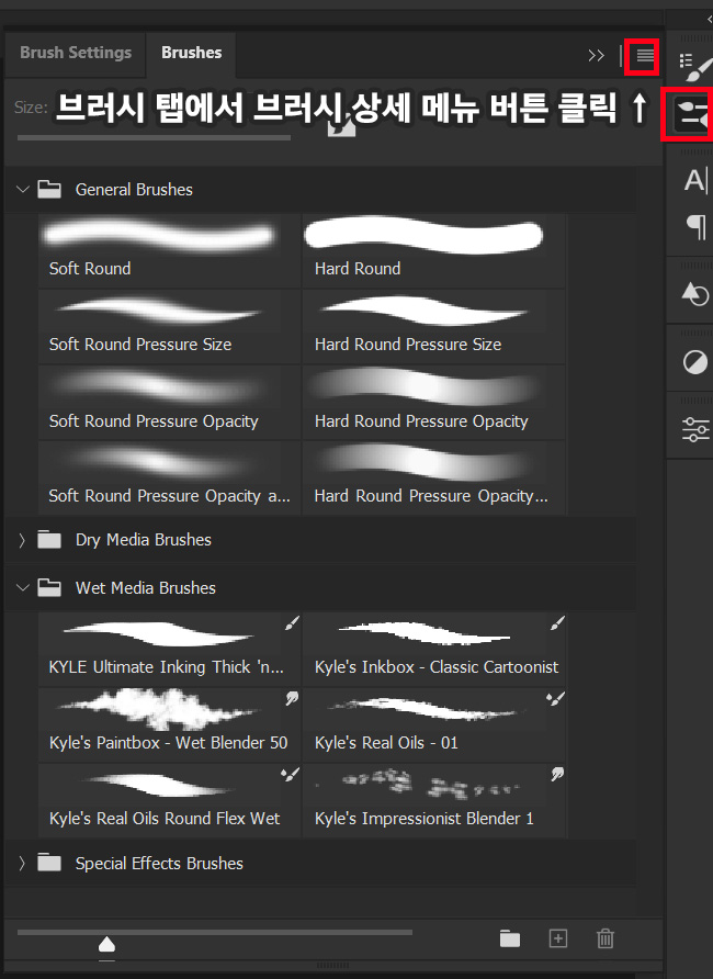 포토샵 CC 기본 브러시 새로 불러오기, 불러오는 방법