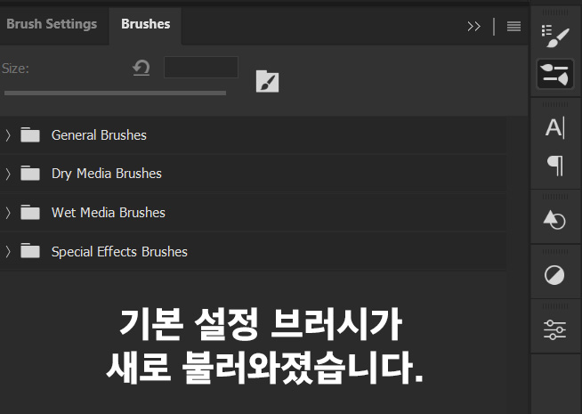 이 과정을 거쳐 새로 기본 브러시를 불러오시면 되겠습니다.