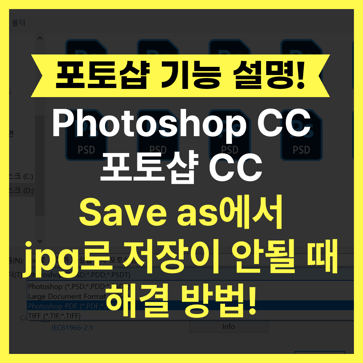 포토샵 CC 갑자기 Save as 다른 이름으로 저장 시 jpg 등 이미지로 저장 안 될 때 해결 방법