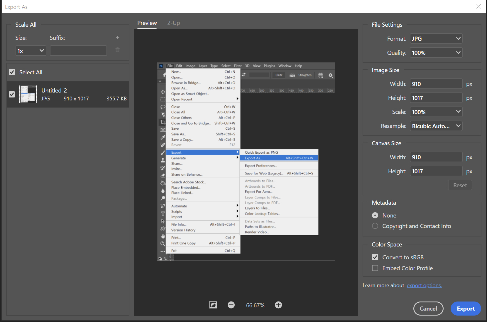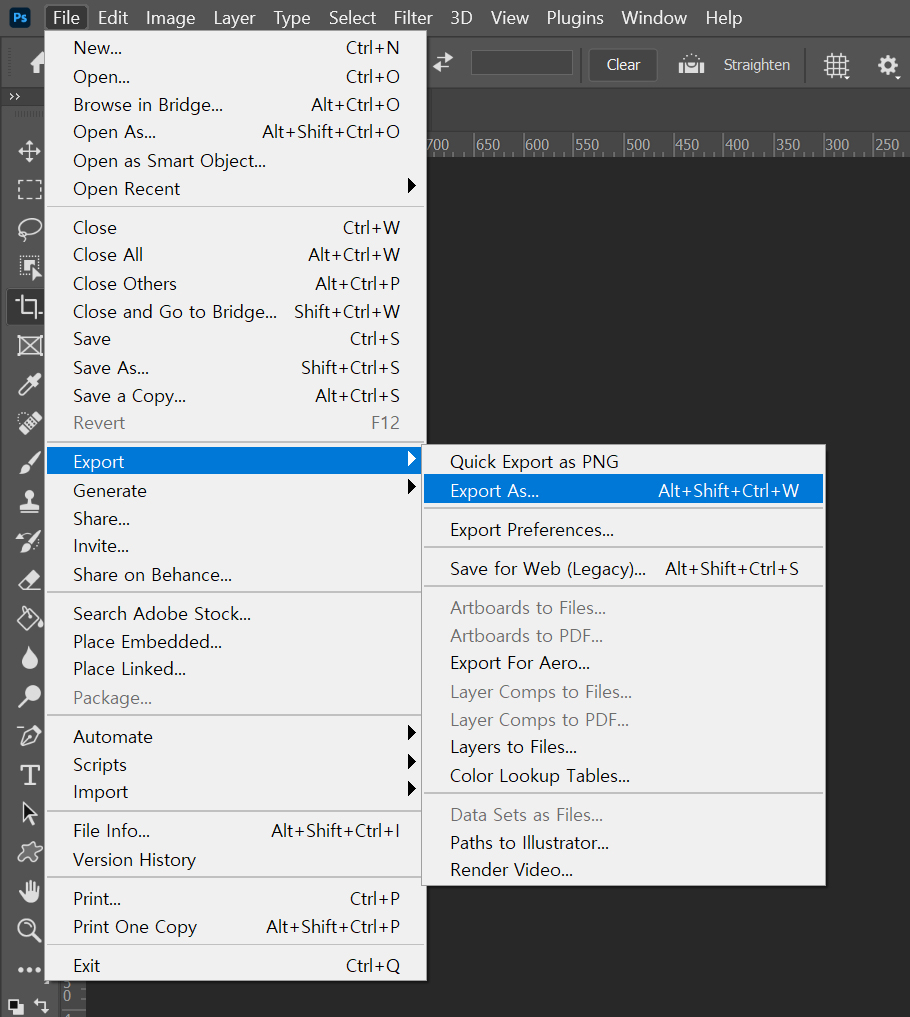 이미지 저장 방식을 [Export as] 즉 내보내기 형식으로 바꾸면서