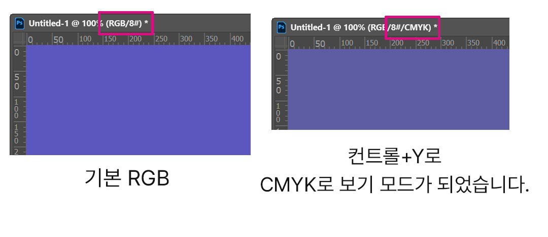 보기(View)의 상태가 RGB에서 CMYK로 보이게 하는 단축키인데요.