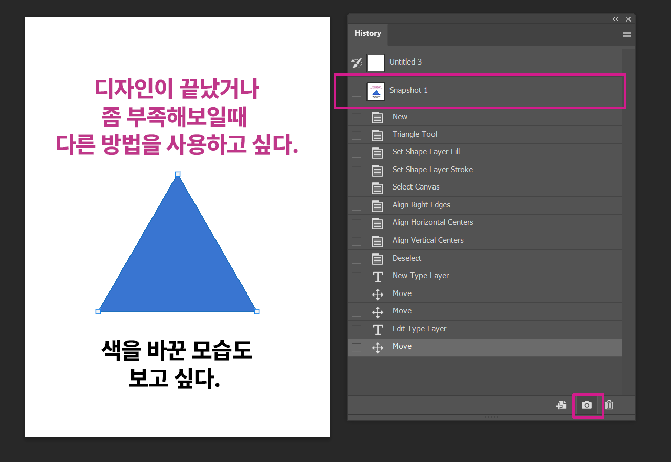 포토샵 내에서 바로 볼 수 있는 방법이 바로 스냅샷 기능입니다.