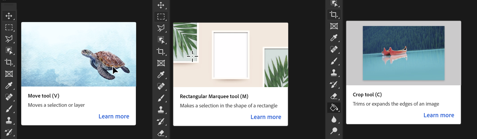어도비 공식 홈페이지에서 툴을 익히실 수 있습니다.