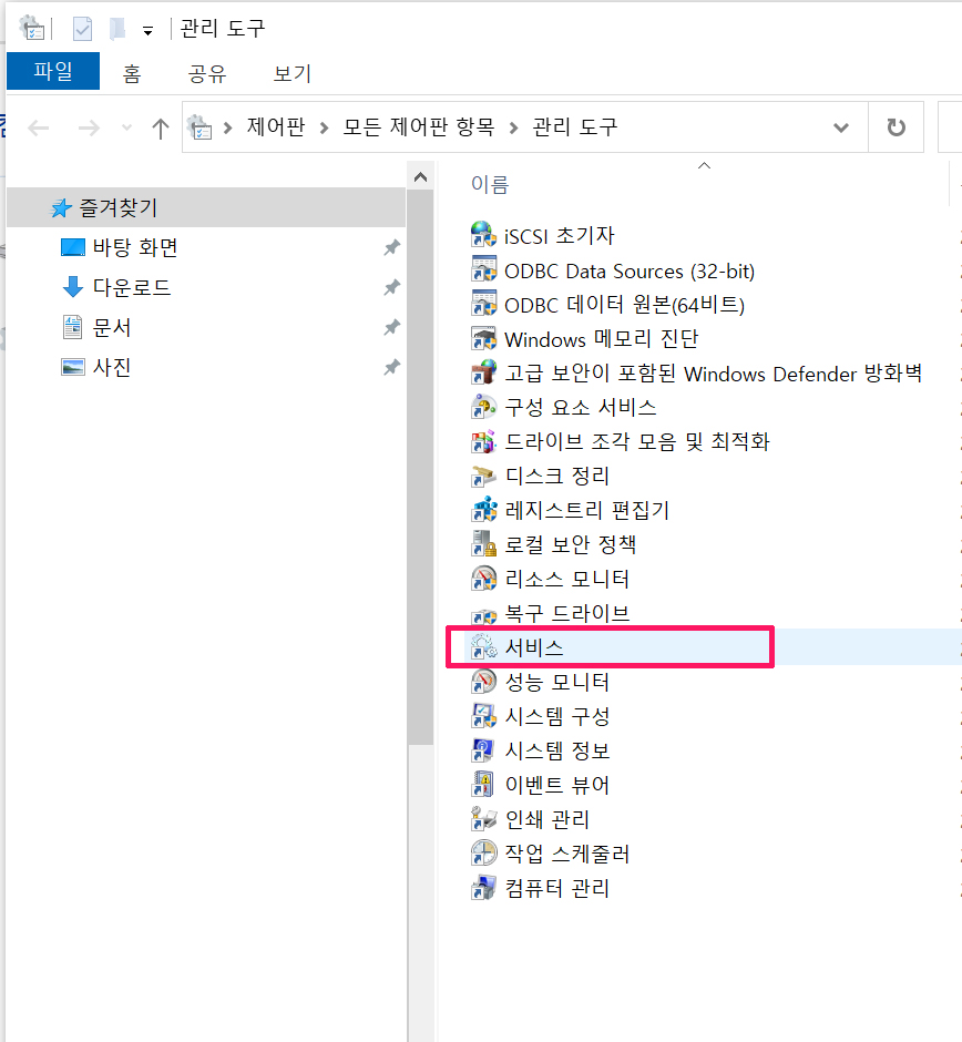 번외 1. 검색창에서 [제어판]으로 들어가 제어판 설정에서 [관리 도구]로 들어갑니다.