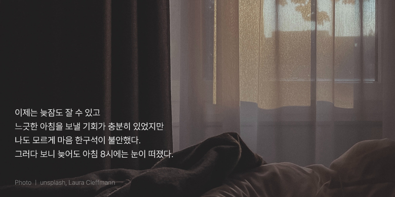 아직 창문에 햇빛이 은은하게 걸친 아침 시간, 두 눈을 뜹니다.