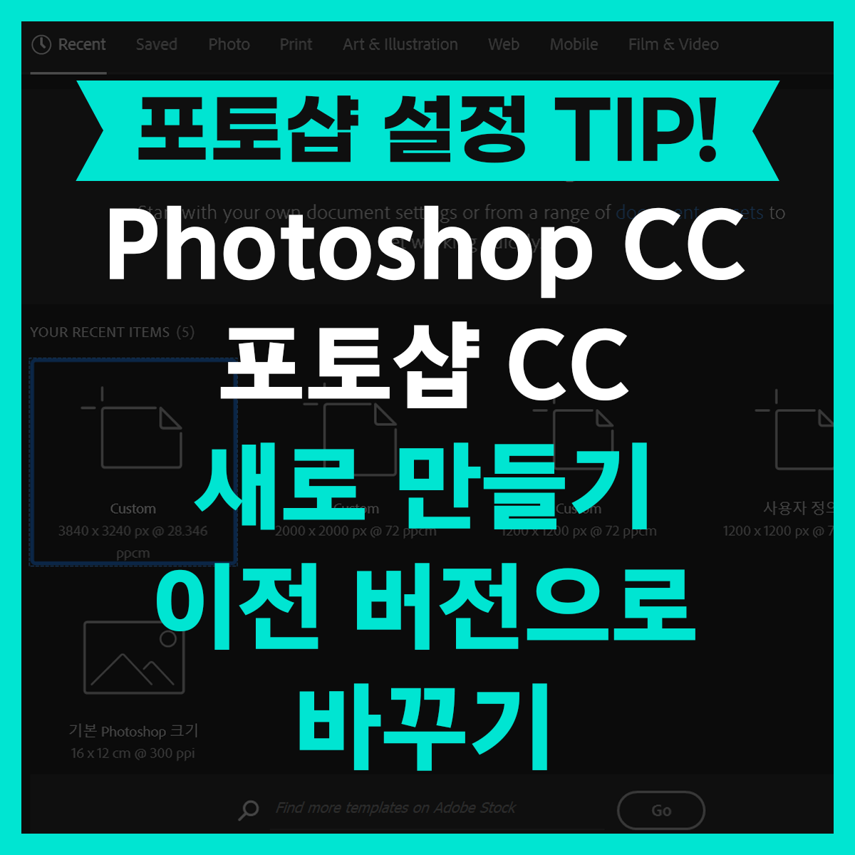 포토샵 CS 버전 이후 포토샵 CC 버전부터는 새로 만들기 (New Document)창의 인터페이스가 바뀌었습니다.