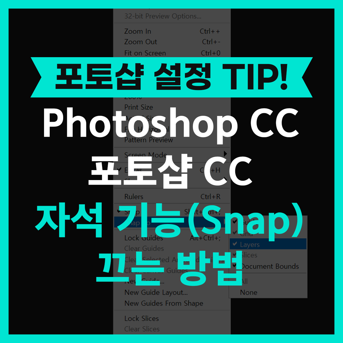 포토샵CC 자석 기능(Snap) 설정, 끄는 방법, 없애는 방법, 비활성화